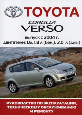 Справочная брошюра Руководство по ремонту Toyota Corolla Verso, а также устройство, руководство по эксплуатации и техническому обслуживанию автомобиля Toyota Corolla Verso (5-местный Теrrа, 7-местный Sol) с 2004 г. выпуска, оборудованных бензиновыми двигателями рабочим объемом 1,6 л. (4-цилиндровый, рядный, 16-клапанный, с цепным приводом (WТ-i)), 1,8 л. (4-цилиндровый, рядный, 16-ти клапанный, с цепным приводом (WT-i)) и дизельными двигателями рабочим объемом 2,0 л., 5-ступенчатой механической и 5-ступенчатой мультимодальной механической M-МТ коробками передач.