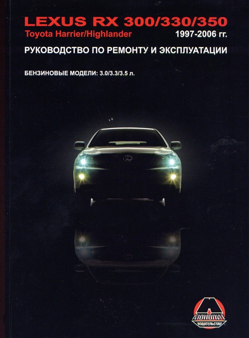 Справочное пособие Руководство по ремонту Toyota Highlander, а также руководство по эксплуатации и техническому обслуживанию, устройство автомобилей Toyota Highlander / Harrier & Lexus RX 300 / 330 / 350 1997-2006 гг. выпуска, оборудованных бензиновыми двигателями рабочим объемом 3,0, 3,3, 3,5 л.