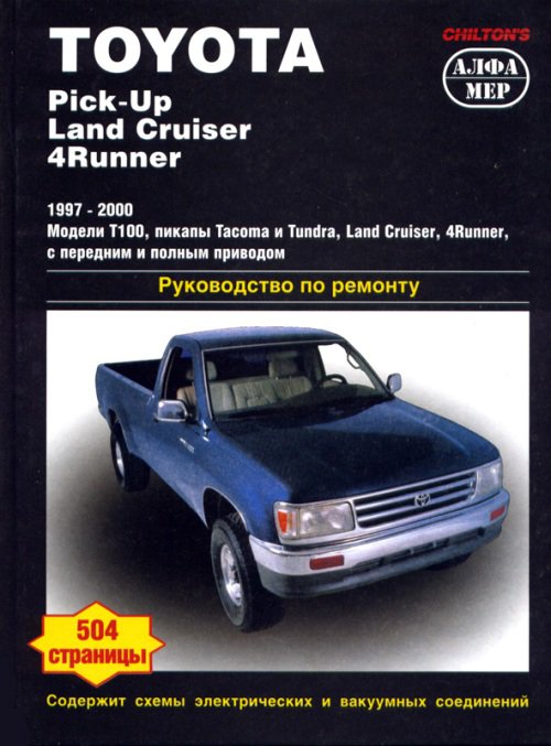 Руководство по ремонту и техническому обслуживанию Toyota Pick-Up Т100, Tacoma и Tundra, Land Cruiser, 4Runner, с передним и полным приводом, 1997-2000 гг. выпуска, оборудованных бензиновыми двигателями 1FZ-FE (4,5 л.), 2RZ-FE (2,4 л.), 3RZ-FE (2,7 л.), 5VZ-FE (3,4 л.), 2UZ-FE (4,7 л.).