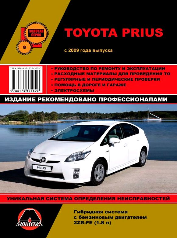 Иллюстрированная профессиональная книга по ремонту Toyota Prius, а также пособие по техническому обслуживанию и эксплуатации автомобилей Тойота Приус с 2009 года выпуска, оборудованных гибридной системой с бензиновым двигателем 2ZR-FE рабочим объемом 1,8 л, мощность: 134 л.с.