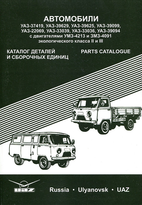 Полный заводской каталог деталей, запчастей и сборочных единиц автомобилей УАЗ 3741, 3962, 2206, 3303. В этом оригинальном каталоге все сборочные единицы и детали сгруппированы по конструктивному и функциональному признакам. Рисунки сборочных единиц, компонентов и деталей UAZ 3741, 3962, 2206, 3303 расположены в порядке сборки и их взаимодействия в данной сборке, что способствует лучшему ознакомлению с конструкцией автомобиля и правильной разборке и сборке сборочных единиц.