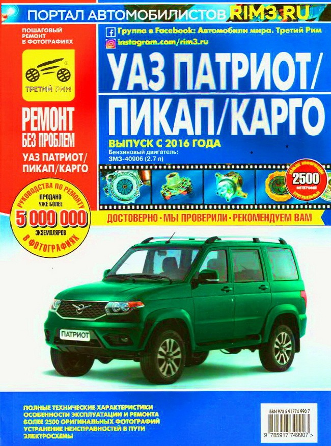Руководство по ремонту УАЗ Карго, инструкция по эксплуатации УАЗ Cargo, книга по техническому обслуживанию UAZ Cargo. Пошаговый ремонт узлов и агрегатов. Устранение неисправностей в пути. Рекомендации по эксплуатации и ТО. Электросхемы. Более 2500 цветных фотографий. Двигатель ЗМЗ_40906 рабочим объемом 2,7 литра.