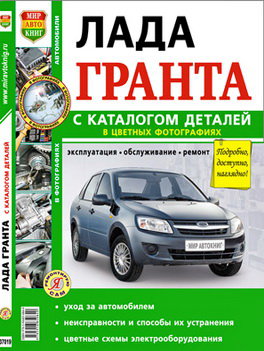Цветная справочная иллюстрированная в цвете инструкция по ремонту Лада Гранта, а также устройство этой машины, руководство по эксплуатации Лада Гранта и руководство по техническому обслуживанию Лада Гранта, каталог запчастей этих авто с 2011 года выпуска. Автомобиль ВАЗ Лада Гранта оснащен двигателями, работающими на бензиновом топливе рабочим объемом 1,6 л. Ремонту узлов и агрегатов Lada Granta.