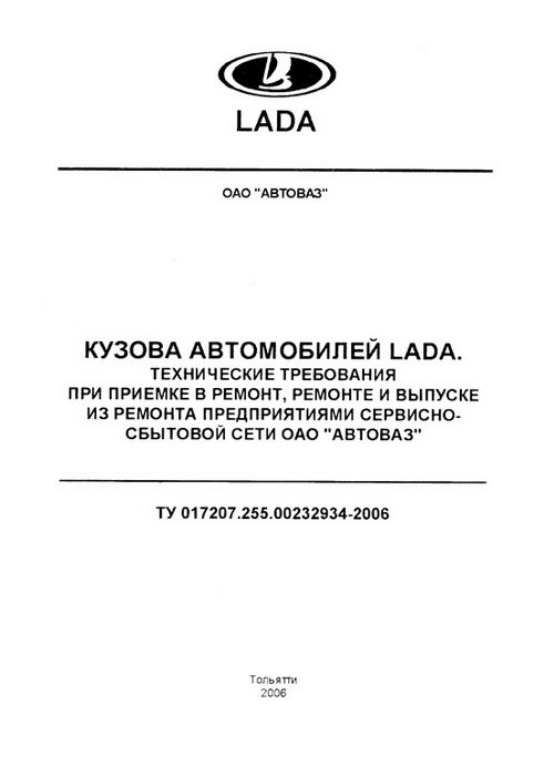 Издательство: АвтоВАЗВ ТУ приведена классификация перекосов кузовов, даны виды повреждения кузовных деталей ВАЗ ЛАДА, указаны возможные способы ремонта кузовов Жигули, перечислены требования к отремонтированным поверхностям деталей, даны категории окрашиваемых поверхностей кузова и требования к качеству их окраски и антикоррозионной обработки.Новый проект АвтоВАЗа