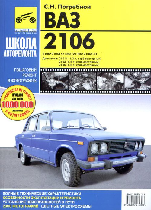 Руководство по ремонту, техническому обслуживанию и эксплуатации автомобилей ВАЗ-2106 – 2103. В книге размещено более 2000 фотографий, тщательно отображающих пошаговый ремонт автомобиля. В издании подробно отражена вся специфика ремонта автомобиля в гаражных условиях. Подробно рассмотрены конструктивные особенности, возможные неполадки и способы их устранения. Указания по разборке, сборке, регулировке и ремонту узлов и систем автомобиля с использованием готовых запасных частей и агрегатов даны пооперационно и иллюстрированы фотографиями и графическими рисунками. Приведены основные параметры для регулировок и проверки, используемые эксплуатационные материалы и заправочные объемы. Описаны особенности эксплуатации, в частности, зимой, основные неисправности в пути и рекомендации по их устранению, советы по приобретению запасных частей. Вся информация, содержащаяся в книге, основана на многолетнем опыте автора, высококвалифицированного специалиста. Приведены возможные неисправности основных систем, агрегатов и узлов, их причины, способы диагностики иустранения. Книга полезна для всех автомобилистов – от начинающих автолюбителей до профессионалов, выполняющих ремонт любой сложности. В отдельные главы издания входят инструкция по эксплуатации автомобиля ВАЗ 2106 – 03 и цветные схемы электрооборудования.Книга станет незаменимым помощником для всех автовладельцев, самостоятельно выполняющих ремонт автомобиля любой сложности.