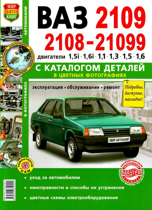 Цветное руководство по ремонту ВАЗ 2109 / 21099 / 2108, техническому обслуживанию и эксплуатации, устройство ВАЗ 2108, 2109, 21099, а также заводской Каталог деталей ВАЗ 2108, ВАЗ 2109, ВАЗ 21099, каталог деталей и сборочных единиц этих моделей, оборудованных двигателями рабочим объемом 1,5i, 1,6i, 1,1, 1,3, 1,5, 1,6 л.