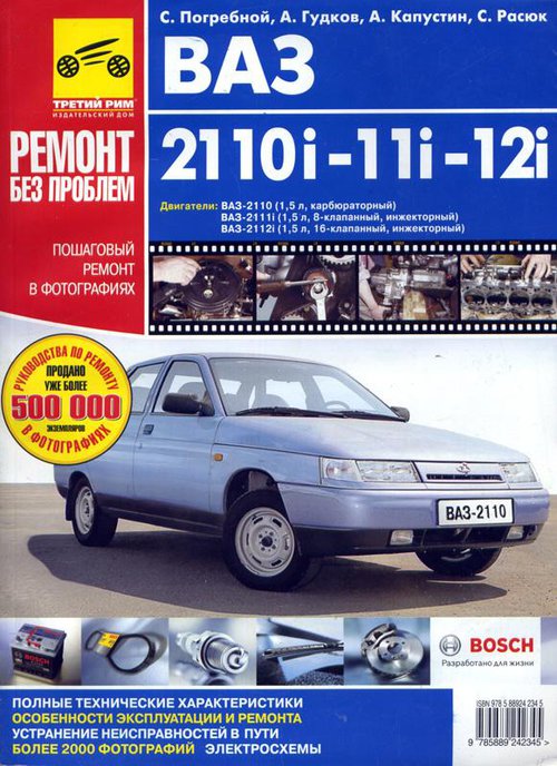 Цветное в фотографиях руководство по ремонту, техническому обслуживанию и эксплуатации автомобилей ВАЗ 2110, 2111, 2112, оборудованных двигателями ВАЗ 2110 (1,5 л, карбюраторный) ВАЗ 2111 (1,5 л, 8-клапанный с системой впрыска), ВАЗ 2112 (1,5 л, 16-клапанный с системой впрыска).
