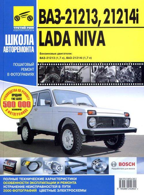 Руководство по ремонту, техническому обслуживанию и эксплуатации автомобилей ВАЗ 21213, 21214i Нива, оборудованных двигателями рабочим объемом 1,7 литра.