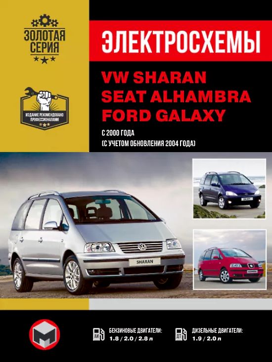 В руководстве приведены подробные электросхемы расположения разъемов, электрических соединений и жгутов проводки первого поколения Фольксваген Шаран, а также аналогов Seat Alhambra / Ford Galaxy: 2000 – 2010 года выпуска. Подойдет для знакомства с устройством и проведения самостоятельного ремонта электронных компонентов автомобиля.