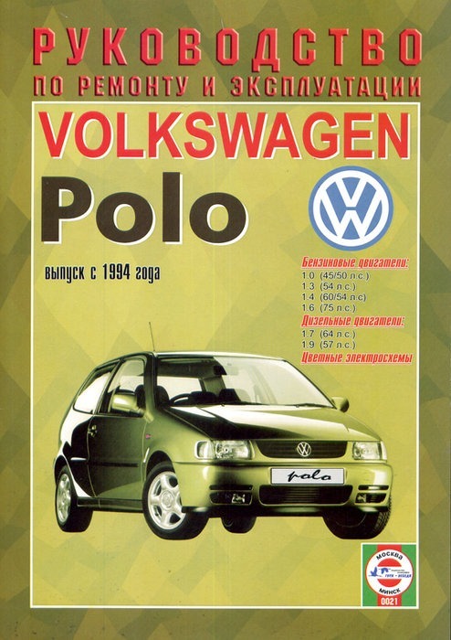 Руководство по ремонту и эксплуатации автомобилей Volkswagen Polo с 1994 г. выпуска, оборудованных бензиновыми двигателями рабочим объемом 1,0, 1,05, 1,3, 1,4, 1,6 л., а также дизельными двигателями рабочим объемом 1,7, 1,9 л. Ремонт Фольксваген Поло. Устройство. ТО. Эксплуатация .Цветные электросхемы.