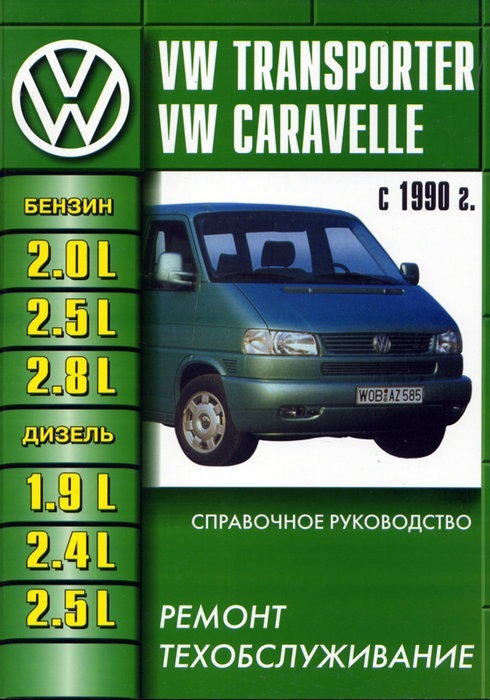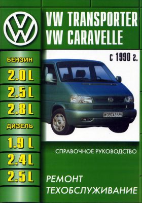 Руководство справочное Пособие по ремонту Volkswagen T4 / Caravelle, а также руководство по эксплуатации и техническому обслуживанию автомобилей Volkswagen T4 / Caravelle с 1990 г. выпуска, оборудованных бензиновыми двигателями рабочим объемом 2,0, 2,5, 2,8 л. и дизельными двигателями рабочим объемом 1,9, 2,4, 2,5 л. Ремонт Фольксваген Т4. Цветные схемы электрооборудования.