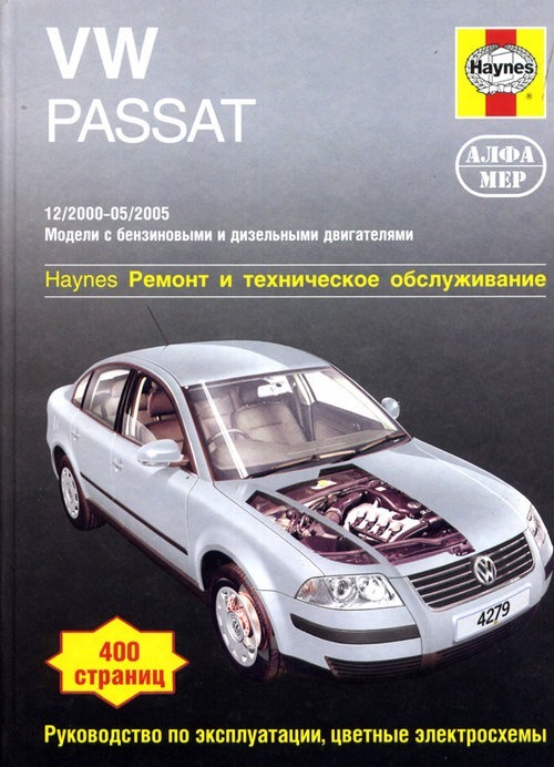Пособие информационно-справочное Руководство по ремонту Volkswagen Passat, а также руководство по техническому обслуживанию и эксплуатации автомобилей VW Passat 2000-2005 гг. выпуска, с кузовами седан и универсал, оборудованных бензиновыми двигателями рабочим объемом 1,8 и 2,0 л., а также турбодизельными двигателями рабочим объемом 1,9 л. Ремонт Фольксваген Пассат. Инструкция по эксплуатации. Цветные электросхемы.