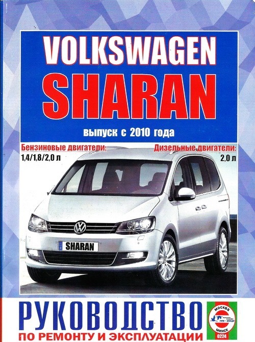 Книга по ремонту Фольксваген Шаран, руководство по ремонту, эксплуатации и обслуживанию VW Sharan с 2010 года выпуска, оборудованных бензиновыми двигателями рабочим объемом 1,4, 1,8, 2,0 литра, а также дизельными двигателями рабочим объемом 2,0 литра.