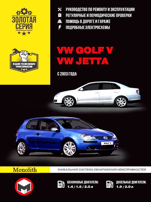 Руководство по ремонту и эксплуатации Фольксваген Гольф 5-го поколения, а также Джетта. В электронной книге рассмотрены автомобили 2003 – 2010 года с дизельными и бензиновыми двигателями.