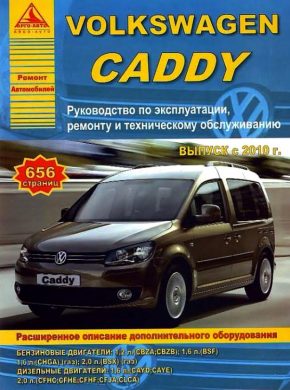 Профессиональная книга по ремонту Volkswagen Caddy, а также пособие по техническому обслуживанию и эксплуатации автомобилей Фольксваген Кадди с 2010 года выпуска, оборудованных бензиновыми двигателями рабочим объемом 1,2 л. (CBZA, CBZB), 1,6 л. (BSF), 1,6 л. (CHGA) (газ), 2,0 л. (BSX) (газ), а также дизельными двигателями – 1,6 л. (CAYD, CAYE), 2,0 л. (CFHC, CFHE, CFHF, CFJA, CLCA). Ремонт Фольксваген Кадди. Устройство, ТО, эксплуатация, электросхемы, жгуты, разъемы.
