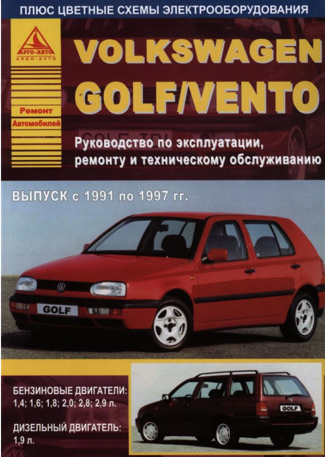 Руководство по ремонту, эксплуатации и техническому обслуживанию автомобилей Volkswagen Golf III / VW Vento 1991-1997 гг. выпуска, оборудованных бензиновыми двигателями рабочим объемом 1,4, 1,6, 1,8, 2,0, 2,8, 2,9 л., а также дизельными и турбодизельными двигателями объемом 1,9 л.