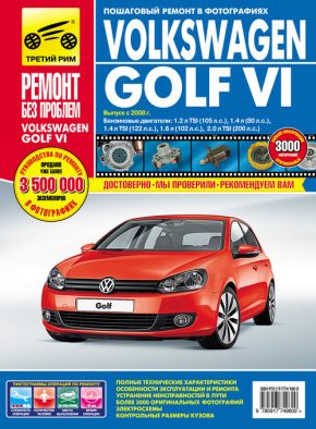 Справочно-информационная цветная справочная руководство по ремонту Volkswagen Golf VI, а также пособие по эксплуатации и пособие по техническому обслуживанию Volkswagen Golf VI, подробное устройство Volkswagen Golf VI с 2008 г. выпуска. Автомобиль Фольксваген Гольф 6 оборудован бензиновыми моторами рабочим объемом 1,2 (105 л.с.), 1,4 (80 и 122 л.с.), 1,6 (102 л.с.), 2,0 л. (200 л.с.). Ремонт Фольксваген Гольф 6. Инструкция по эксплуатации. Цветные фото. Схемы электрооборудования.