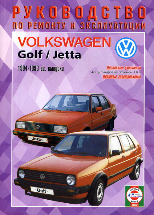 Справочное руководство Книга по ремонту Фольксваген Джетта 2, Гольф 2, пособие по эксплуатации и техобслуживанию Volkswagen Jetta / Golf II, 1984-1993 гг. выпуска, оборудованных дизельными 4-х цилиндровыми двигателями рабочим объемом 1,6 л., в том числе с турбонаддувом.