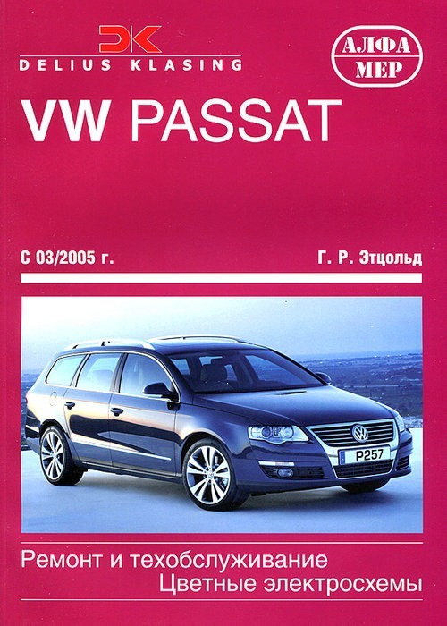Справочно-информационное иллюстрированное пособие Инструкция по ремонту VW Passat (Limousine, Variant), а также руководство по эксплуатации и техническому обслуживанию VW Passat, устройство VW Passat с 2005 года выпуска, оборудованных бензиновыми двигателями рабочим объемом 1,4, 1,6, 1,8, 2,0 л., а также дизелями литражом 1,6, 1,9 и 2,0. Автор Г.Р. Этцольд. Перевод с немецкого.
