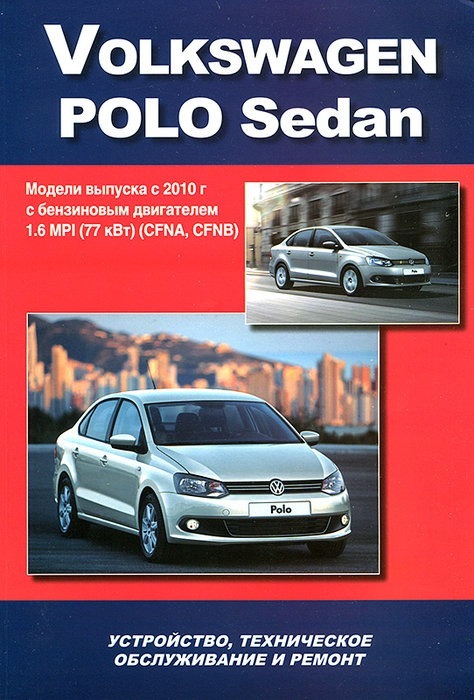 Справочное иллюстрированное издание книга по ремонту Volkswagen Polo Sedan, устройство Volkswagen Polo Sedan, руководство по эксплуатации и техобслуживанию Volkswagen Polo Sedan, которые выпускаются концерном Volkswagen AG с 2010 года и оснащаются модели бензиновыми силовыми агрегатами CFNA, CFNB литражом 1,6 (77 кВт).