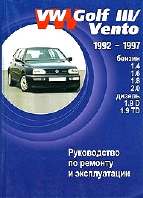 Ремонтное руководство Пособие по ремонту Фольксваген Венто / Гольф 3, а также инструкция по техническому обслуживанию и эксплуатации автомобилей VW Vento / Golf III. Модели выпускались с 1992 по 1997 гг. выпуска и оборудовались бензиновыми двигателями рабочим объемом 1,4 л., 1,6 л., 1,8 л., 2,0 л., а также дизельными двигателями рабочим объемом 1,9 л. Кузов: хэтчбек, седан, универсал.