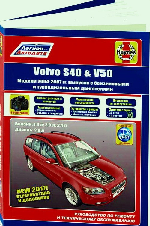 Руководство по ремонту Volvo S40, Volvo V50, инструкция по эксплуатации Вольво S40, рекомендации по техническому обслуживанию автомобилей Volvo S40 / Volvo V50. В пособиии рассмотрены вопросы эксплуатации, технического обслуживания и ремонта автомобилей Вольво S40 и Вольво V50 выпуска 2004-2007 года. В книге описаны модификации в кузовах седан и универсал с бензиновыми силовыми агрегатами объемом 1.8 л, 2.0 л и 2.4 л, а также турбодизельной двигательной установкой 2.0 л.