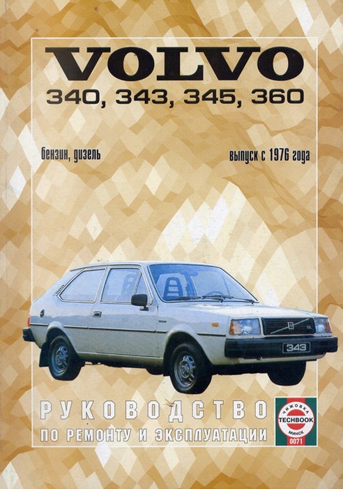 Справочное издание Руководство по ремонту Вольво 340, 343, 345, 360, а также руководство по эксплуатации автомобилей Volvo 340, 343, 345, 360 с 1976 г. выпуска, оборудованных бензиновыми 4-х цилиндровыми двигателями B13/14, B172, B19, B200 рабочим объемом 1,3, 1,4, 1,7, 2,0 л. и дизельными 4-х цилиндровыми двигателями D16 объемом 1,6 л.