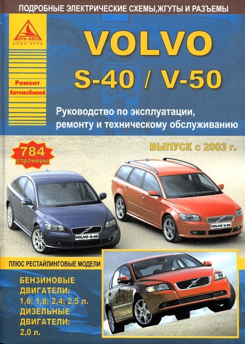 Иллюстрированный информационно-справочный Мануал по ремонту Volvo S40 / Volvo V50, а также руководство по эксплуатации и операциям связанным с техобслуживанием, устройство Volvo S-40 / Volvo V-50, выпускаемых с 2003 года, а также более поздних рестайлинговых моделей. Модели оборудованы двигателями на бензине рабочим объемом 1,6, 1,8, 2,4 и 2,5 л., а также дизелями объемом 2,0 л.