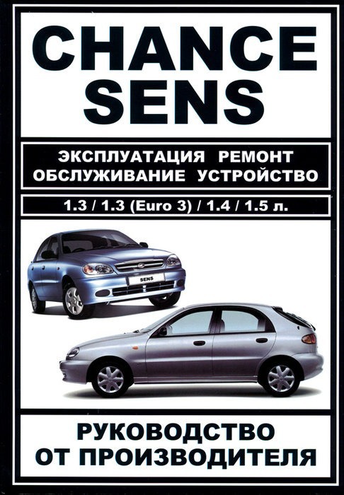 Справочное иллюстрированное автоиздание Инструкция по ремонту ZAZ Sens / ZAZ Chance, а также устройство автомобиля, руководство по эксплуатации и техническому обслуживанию ZAZ Sens / ZAZ Chance, оборудованных бензиновыми двигателями литражом 1,3, 1,3 (Euro 3), 1,4, 1,5.